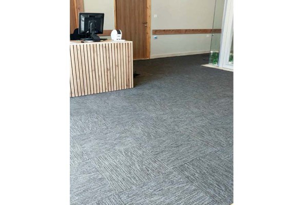 Laying carpet tiles at Aseel Medical Hospital in Hurghada.